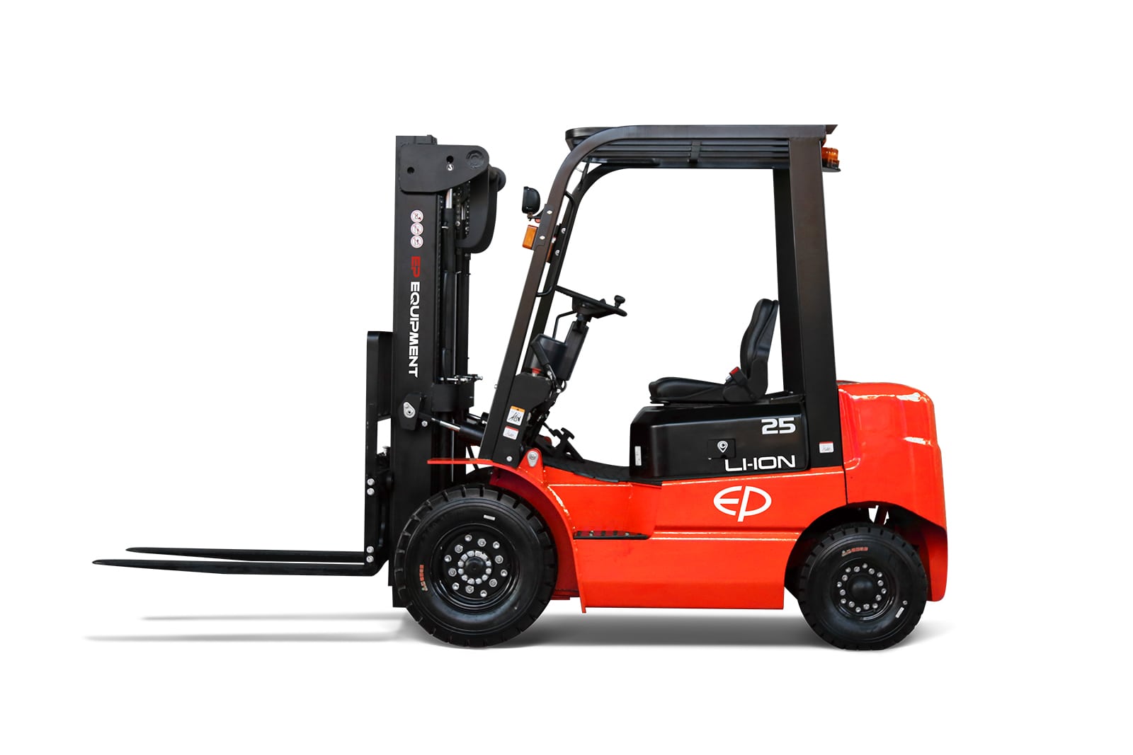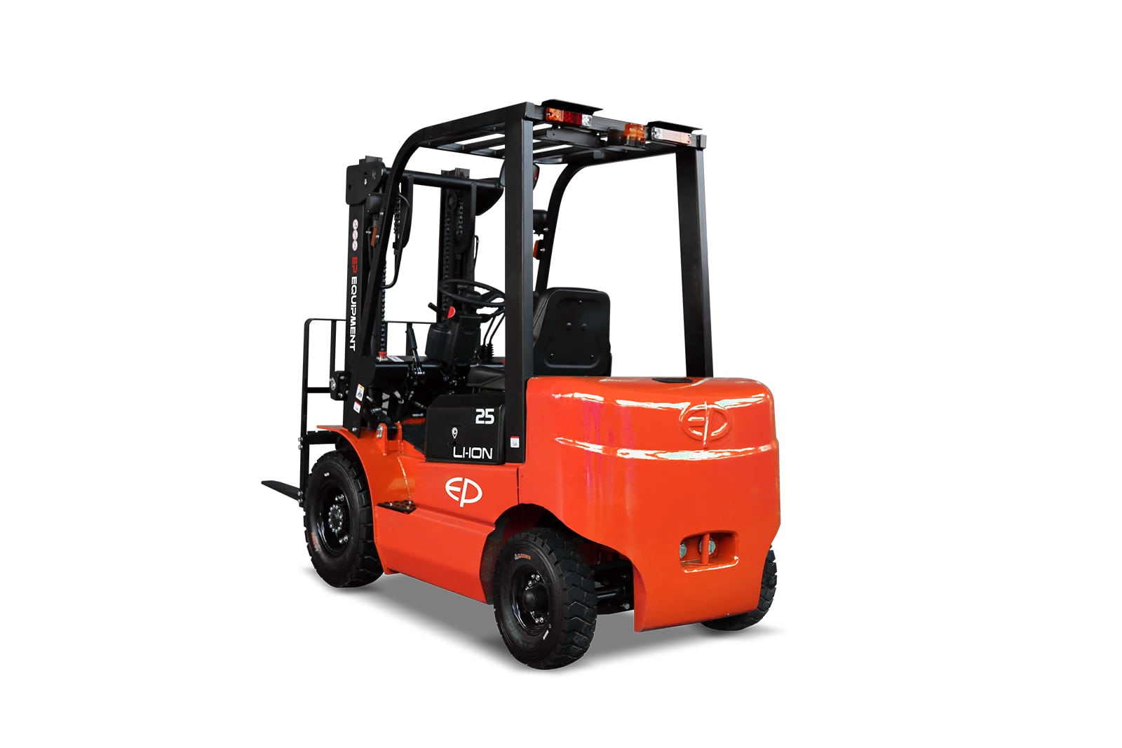 EFL series is great tool that combines the advantages of IC forklift trucks and electric forklift trucks. By replacing the diesel engine with a 205AH li-ion battery, It offers the driver a large operator compartment,big wheels,strong chassis, and standard components at agreat price, while the Li-Ion battery and the electric motors help to reduce carbon footprint, running cost and decrease the energy cost.