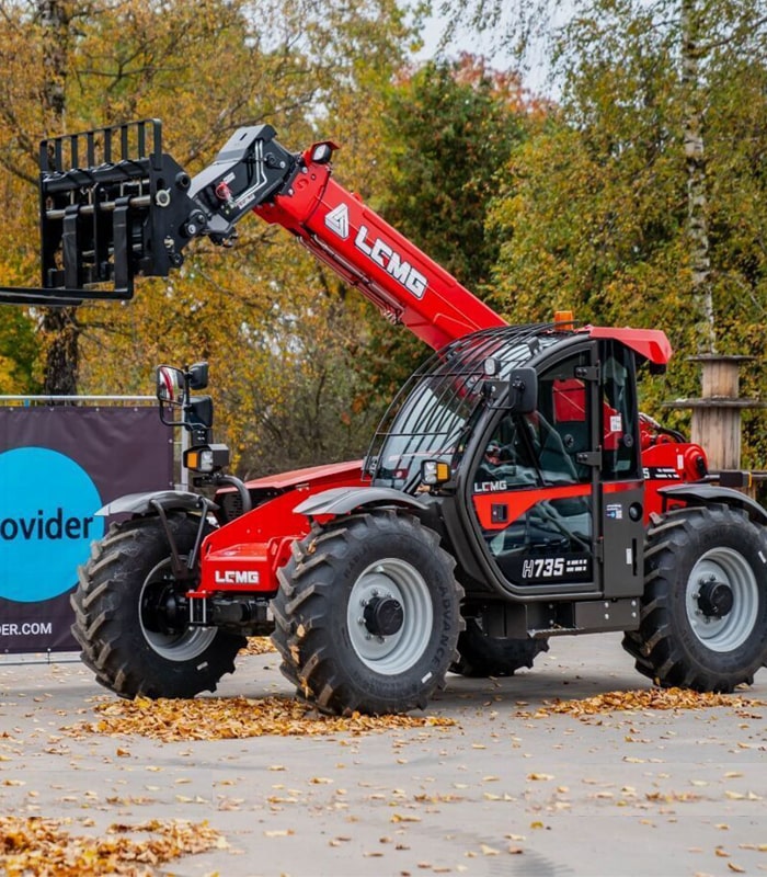 The LGMG H735 is a telehandler with a capacity of 3500kg and a maximum lifting height of 7 meters.