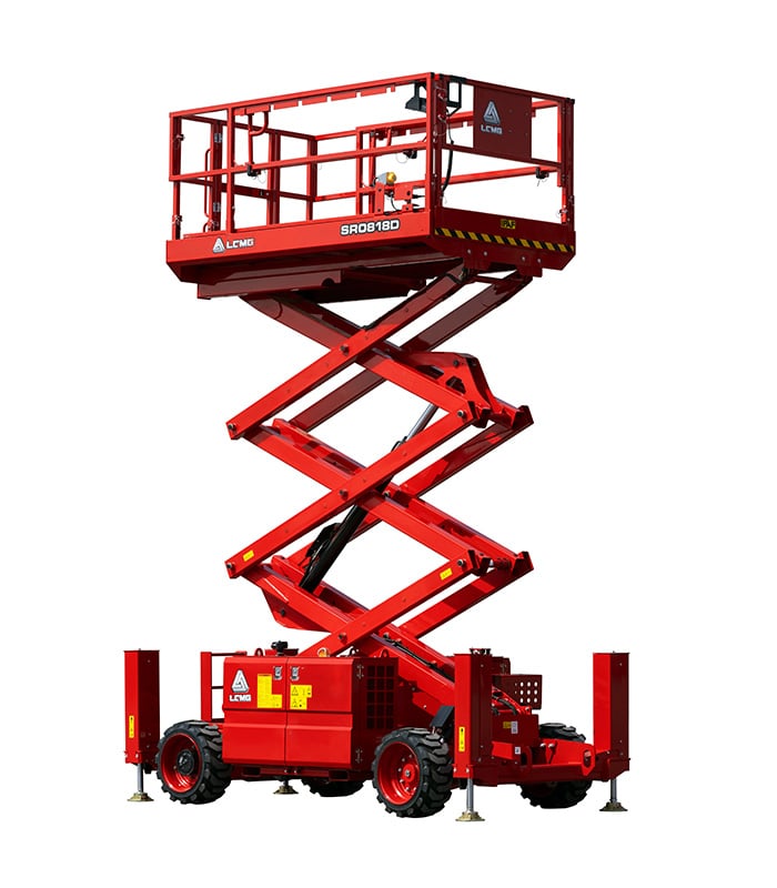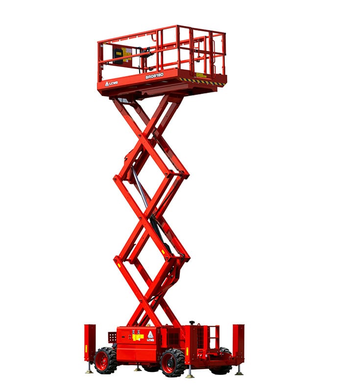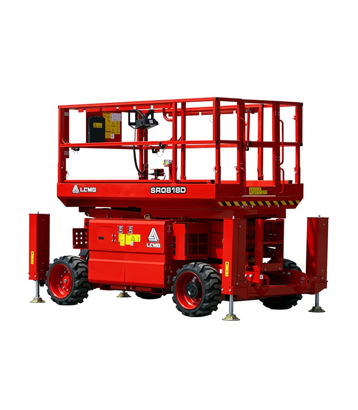 LGMG SR18D Series rough terrain scissor lifts are specifically built for tough construction sites with four-wheel drive and fantastic gradeability. High load capacities with compact design provide a great combination for the larger working area and greater maneuverability through rough terrain job sites.